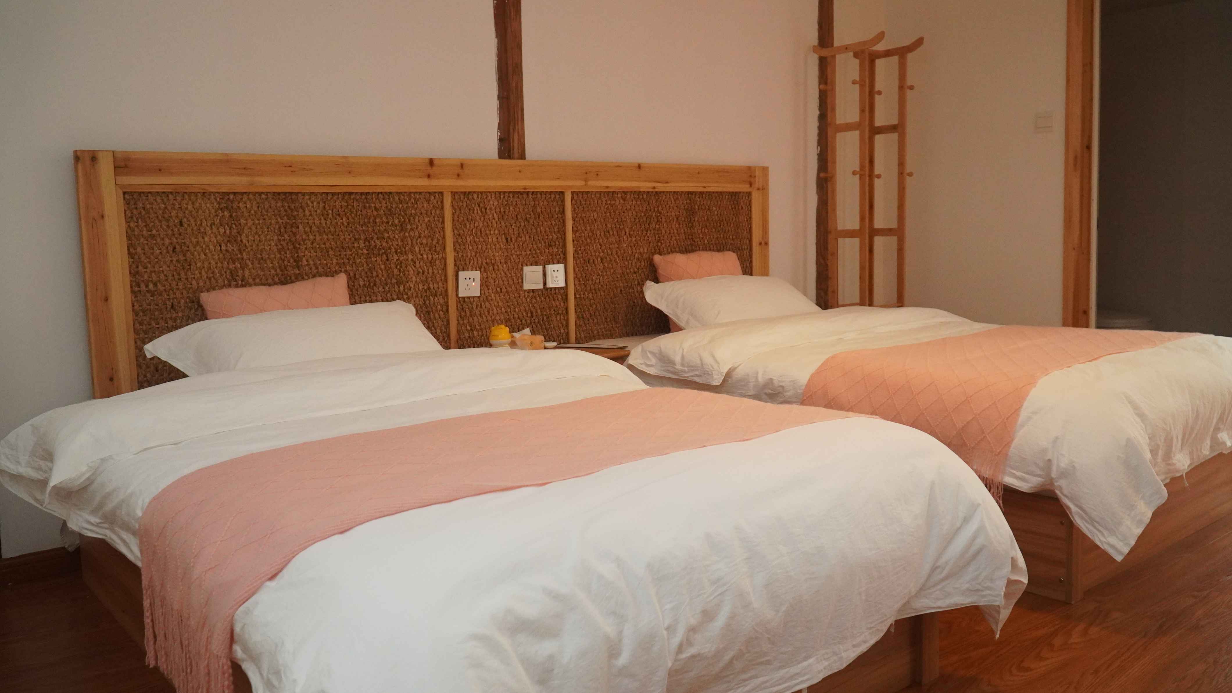 便利设施:220V电压插座、空调、客房WIFI,晾衣架,遮光窗帘,电视机、电热水壶、茶几